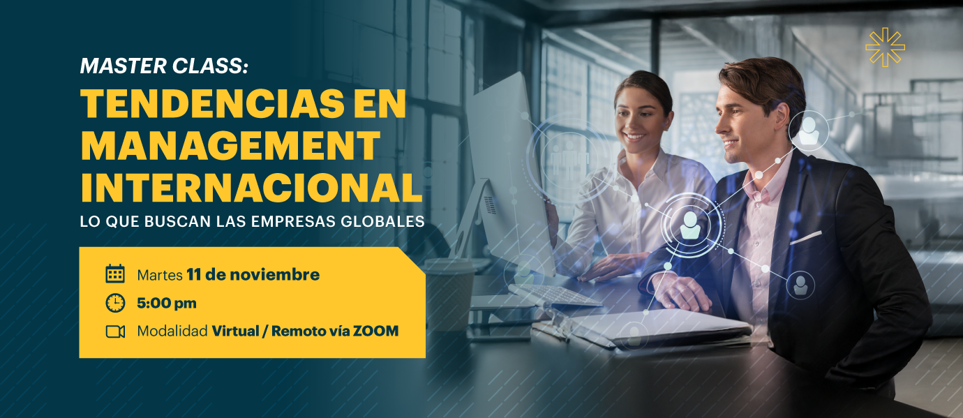 En esta Masterclass descubrirás las últimas tendencias que están transformando el management internacional. Potencia tus habilidades para destacarte en entornos multinacionales con visión, innovación y trabajo colaborativo.